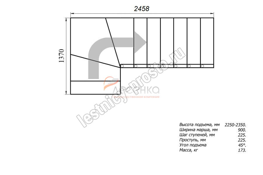 Высота лестницы 2250 - 2350 мм
