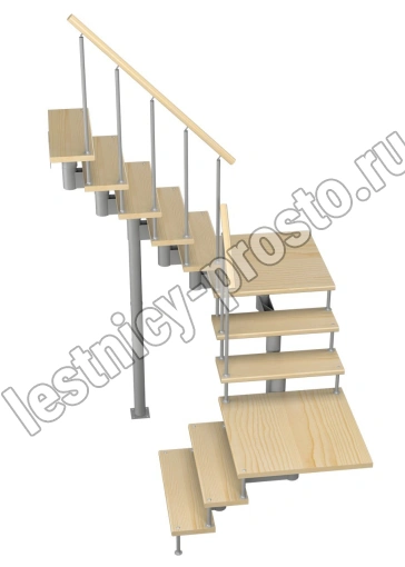 Модульная лестница Комфорт 225 2475-2585, Серый, Сосна, Нержавеющая сталь