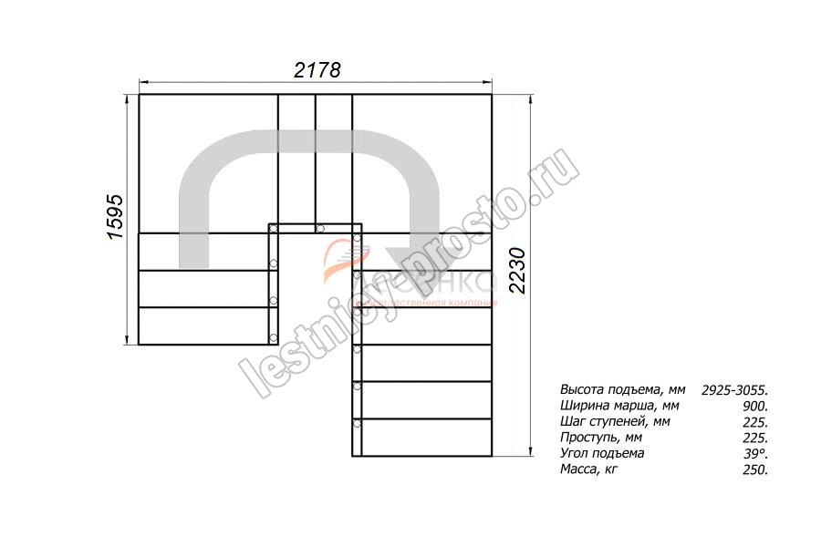 Высота лестницы 2925 - 3055 мм