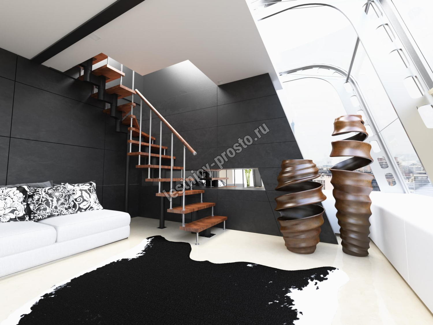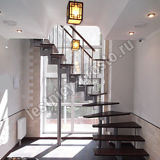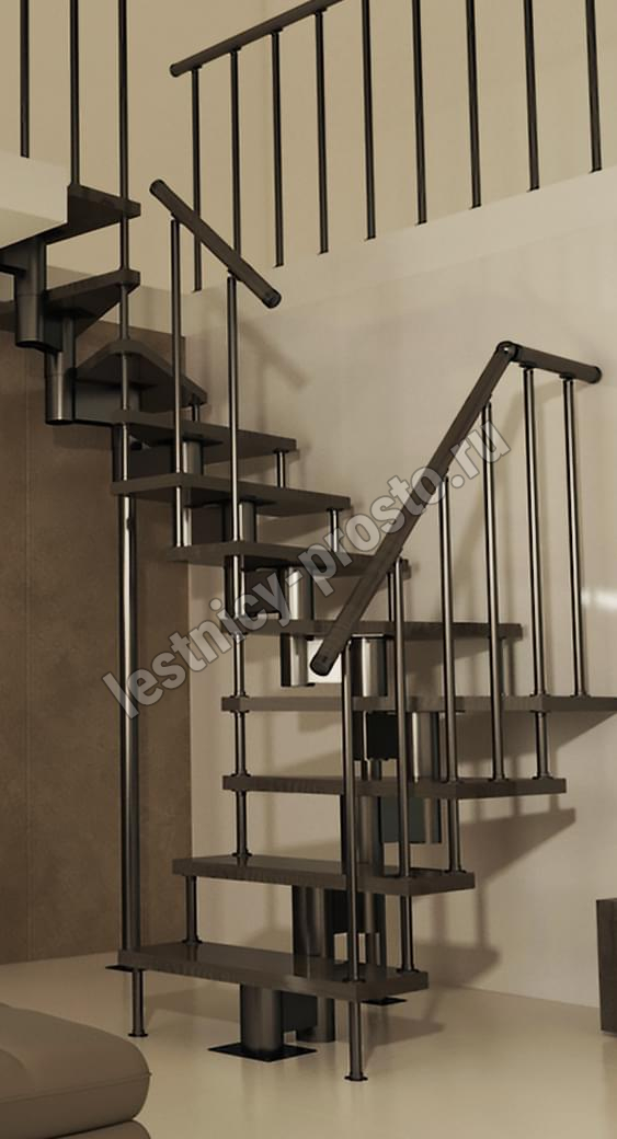 Каркас лестницы представляет собой набор модулей, которые комплектуются уже готовыми к монтажу.