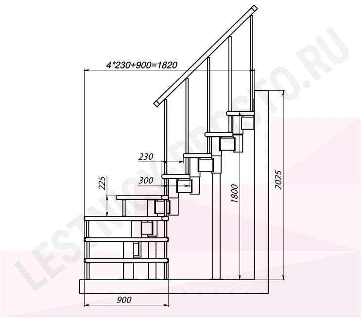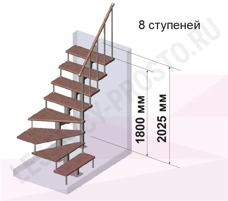 Высота лестницы 1800 - 2025 (8 ступеней) мм