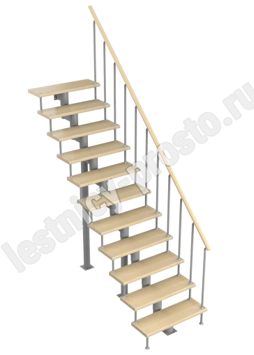 Модульная лестница Стандарт 2475-2585, Серый, Бук, Нержавеющая сталь