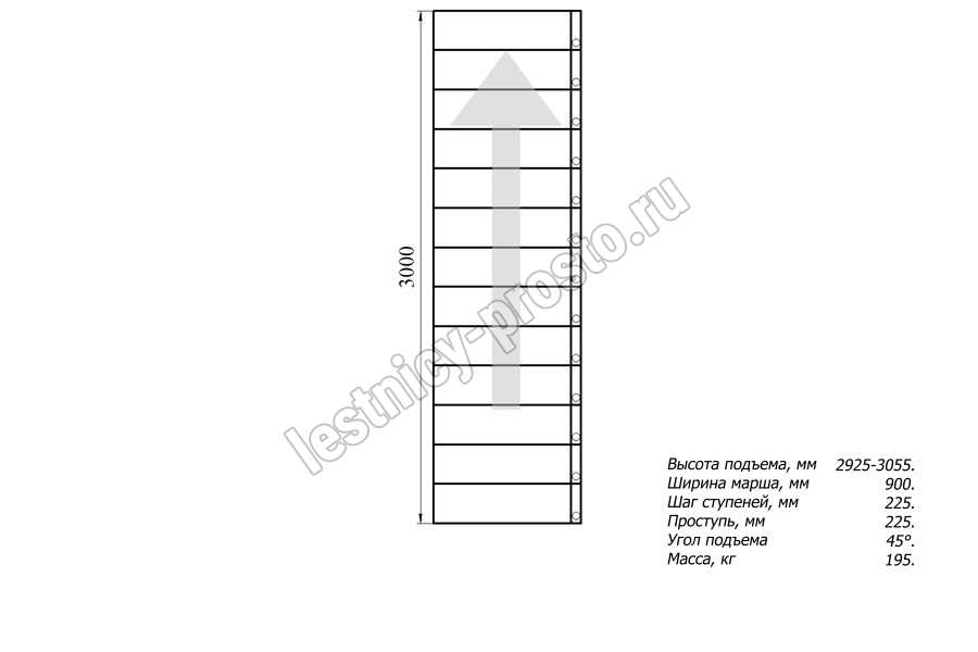 Модульная лестница Стандарт 2925-3055, Белый, Сосна, Крашеная, Без Ступений