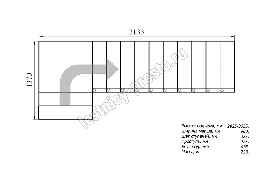 Высота лестницы 2925 - 3055 мм