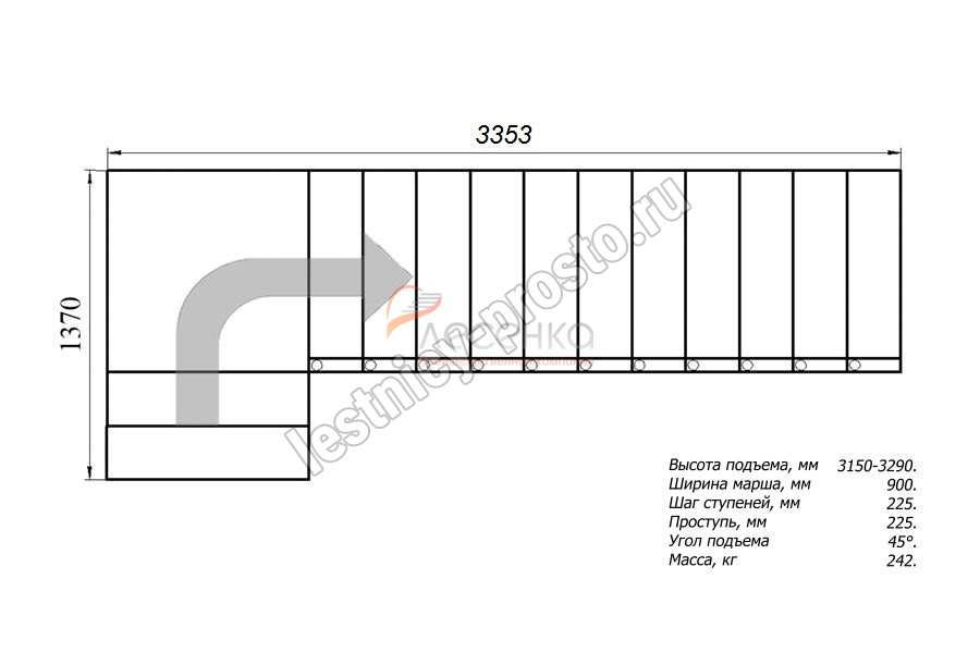 Модульная лестница Статус 225 3150-3290, Серый, Сосна, Нержавеющая сталь