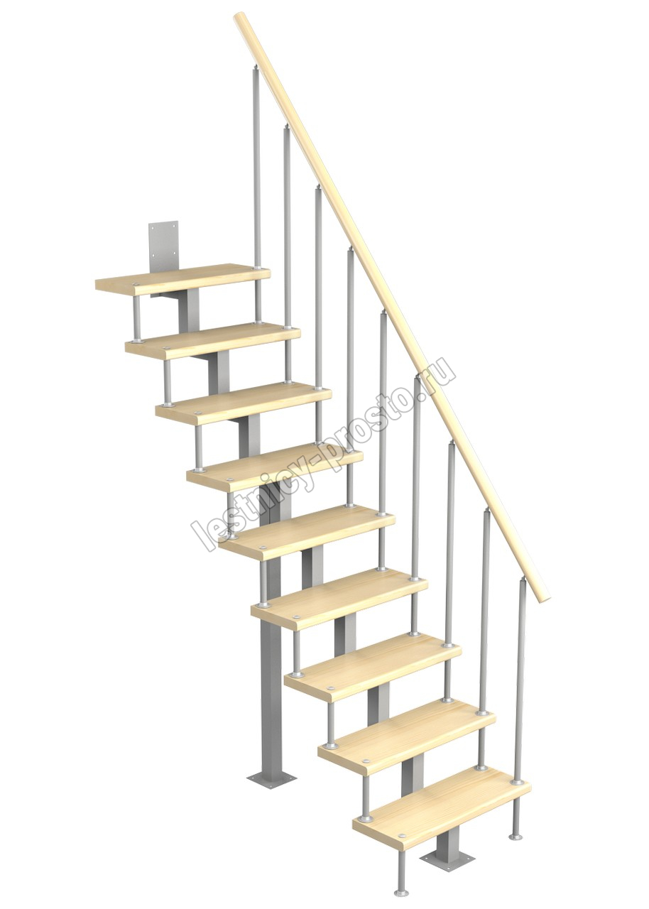Модульная малогабаритная лестница Линия 2025-2250, Серый, Сосна, Крашеная, Без Ступений