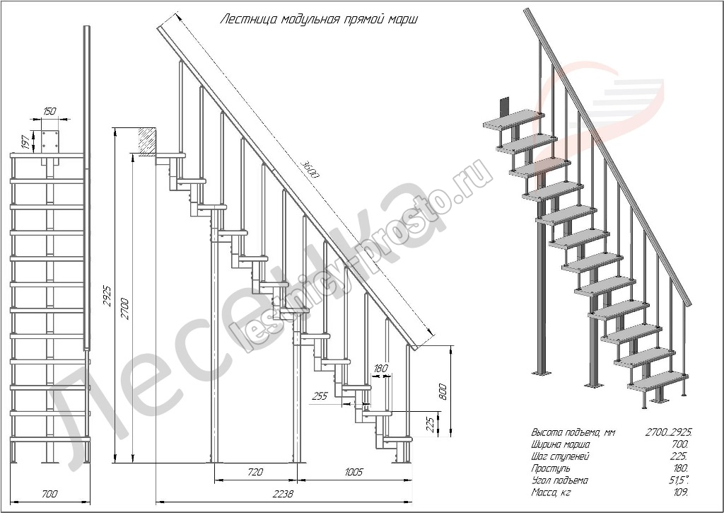 Высота лестницы 2700 - 2925 мм
