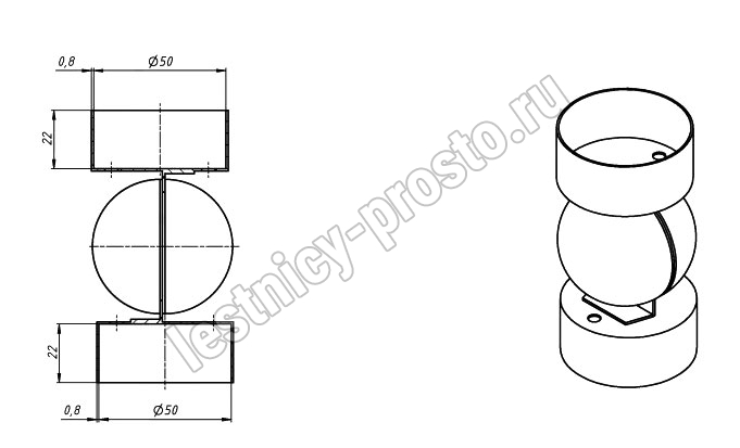 Шарнир для поручня Ø 50 мм, толщина 0,8 мм