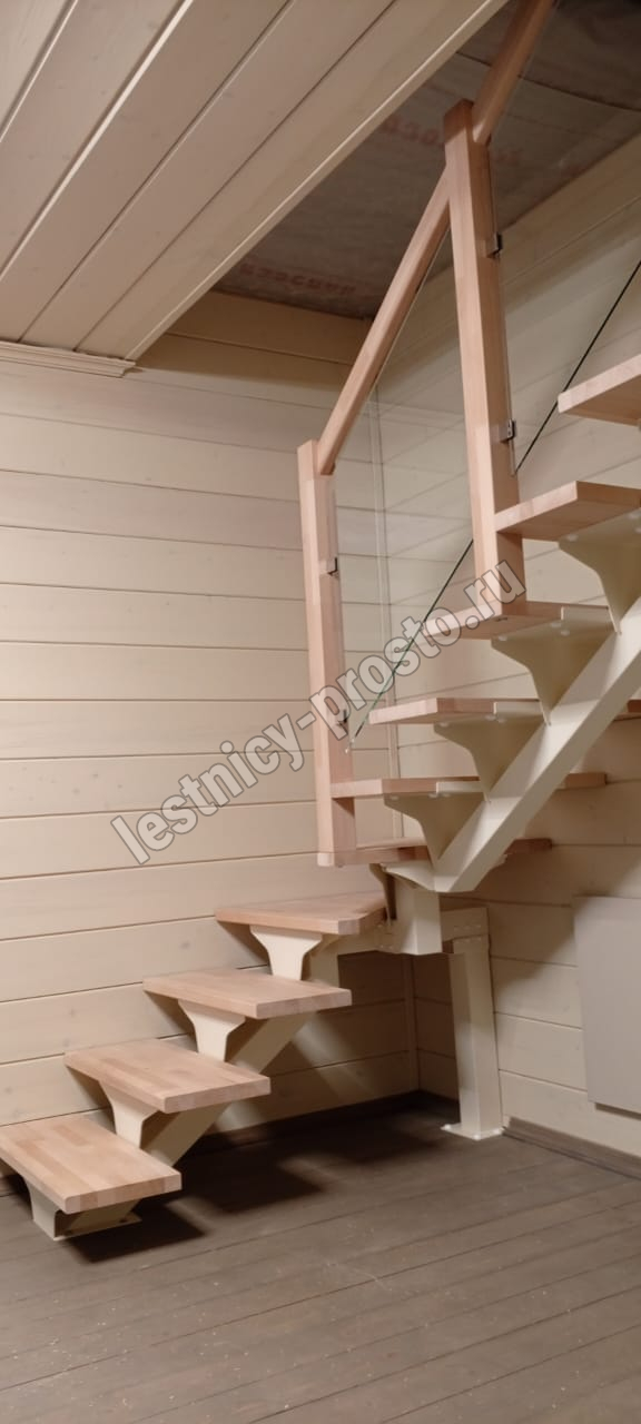 Ступени и поручень выполнены из срощенного бука категории АВ без покрытия.