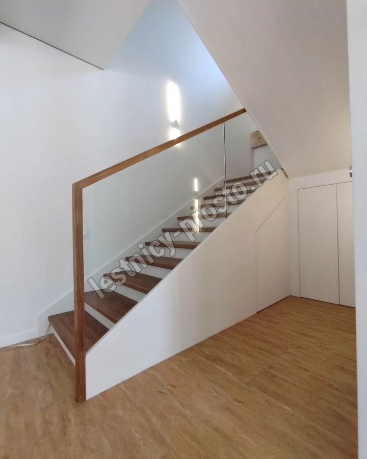 Лестница на второй этаж с ограждением из стекла LP-1-4