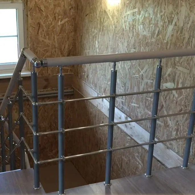 Балюстрада состоит из округлых балясин, трубок из нержавеющей стали и цельного гибкого ПВХ поручня.