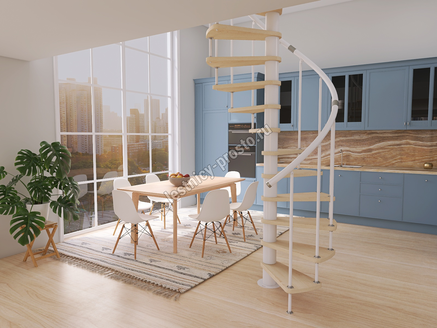 Винтовая лестница Prosto Spiral White D160см, h303.9-348,1 см, бук
