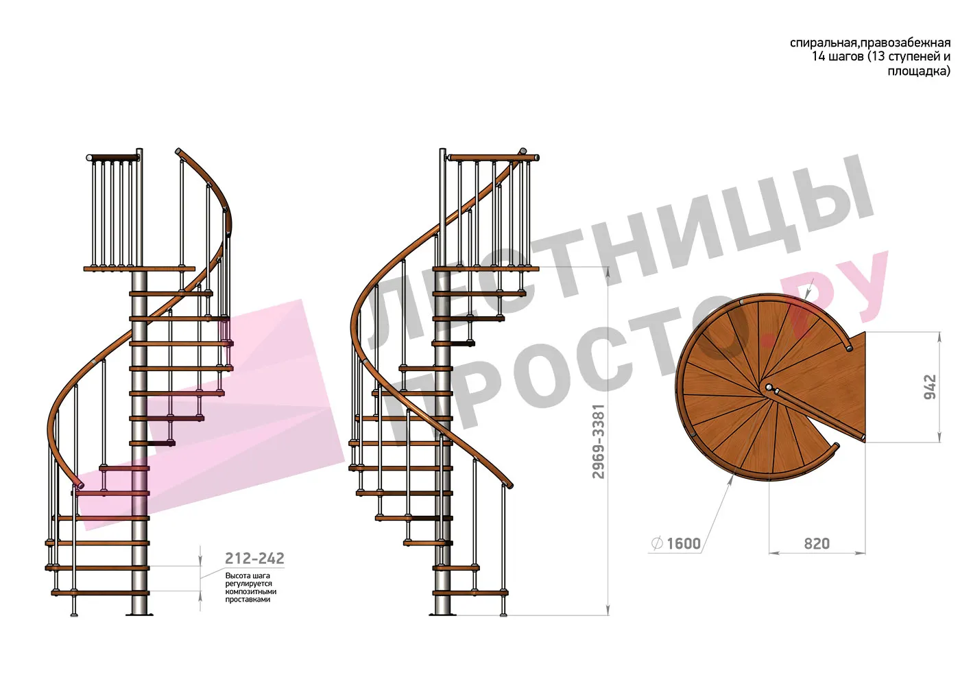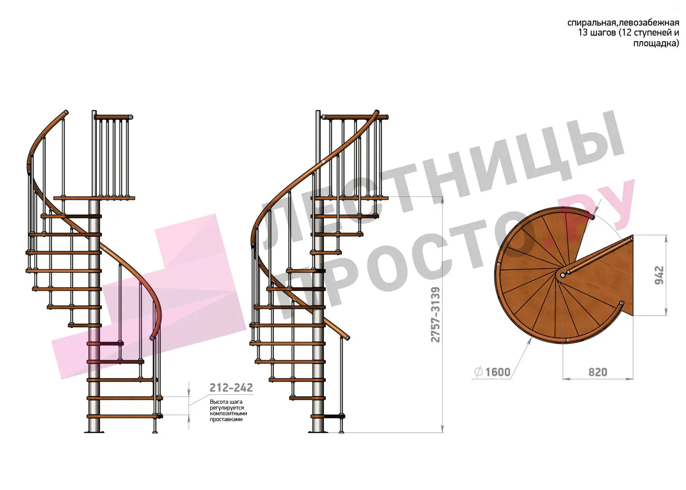 Винтовая лестница Prosto Spiral White/Высота 2757 - 3139 мм