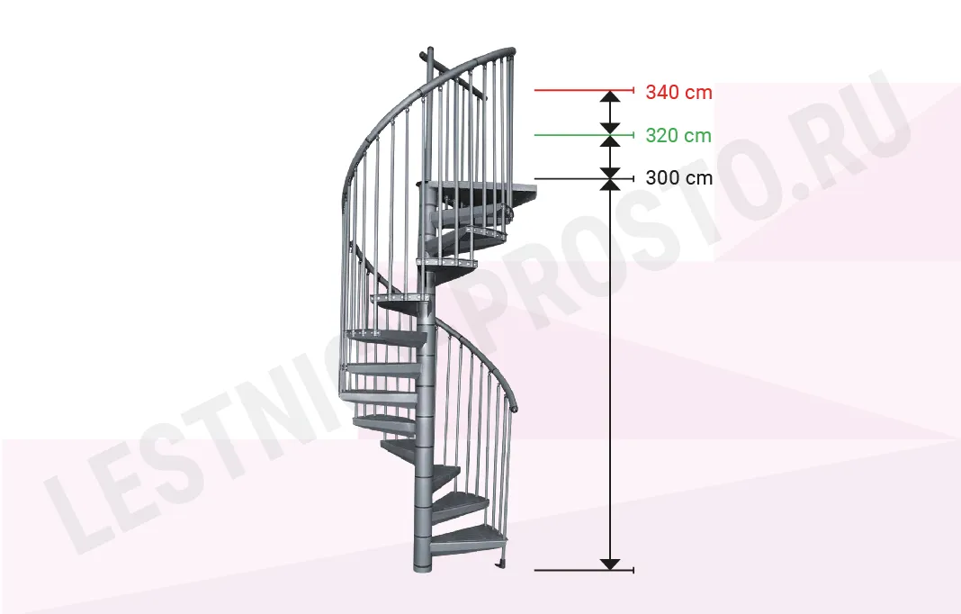 Благодаря возможности регулировать высоту шага с помощью пластиковых вставок (входят в базовый комплект), высоту лестницы можно варьировать в пределах от 2730 до 3000 мм.