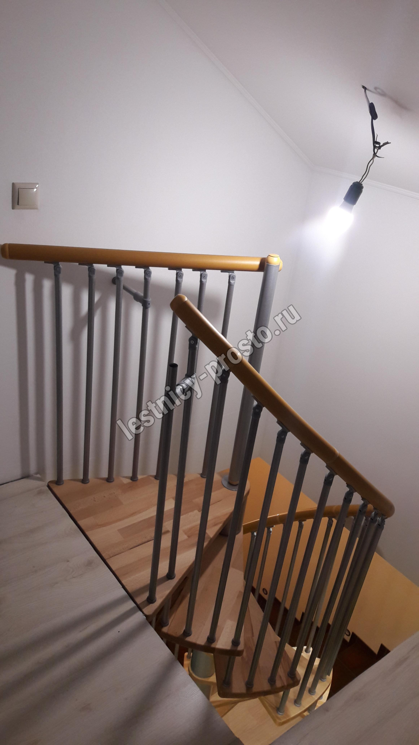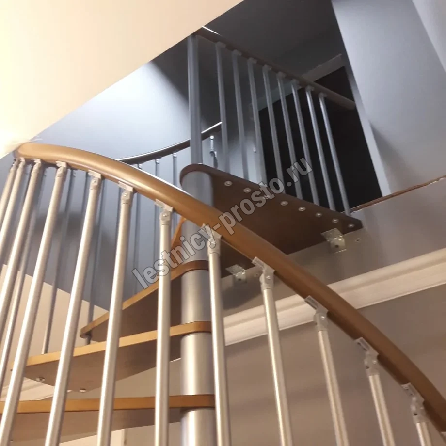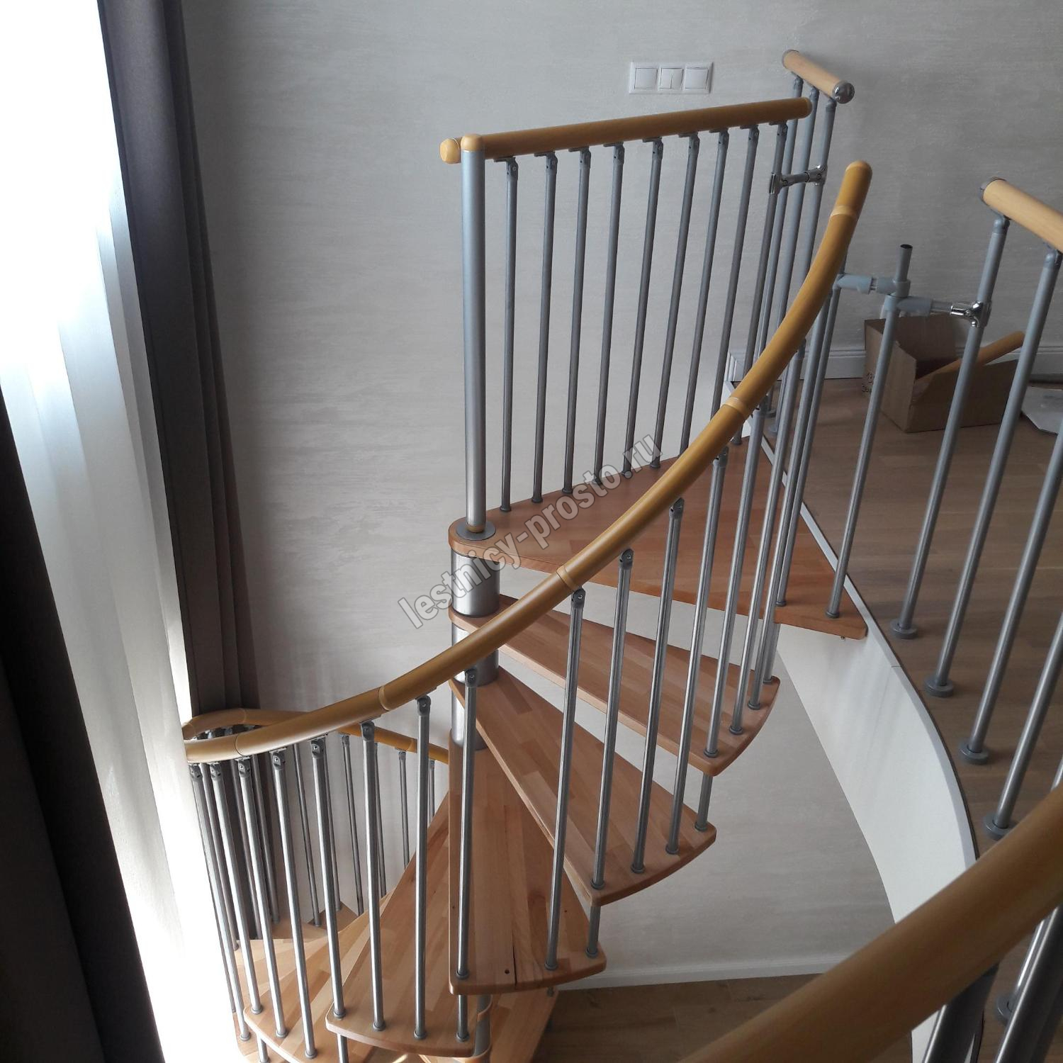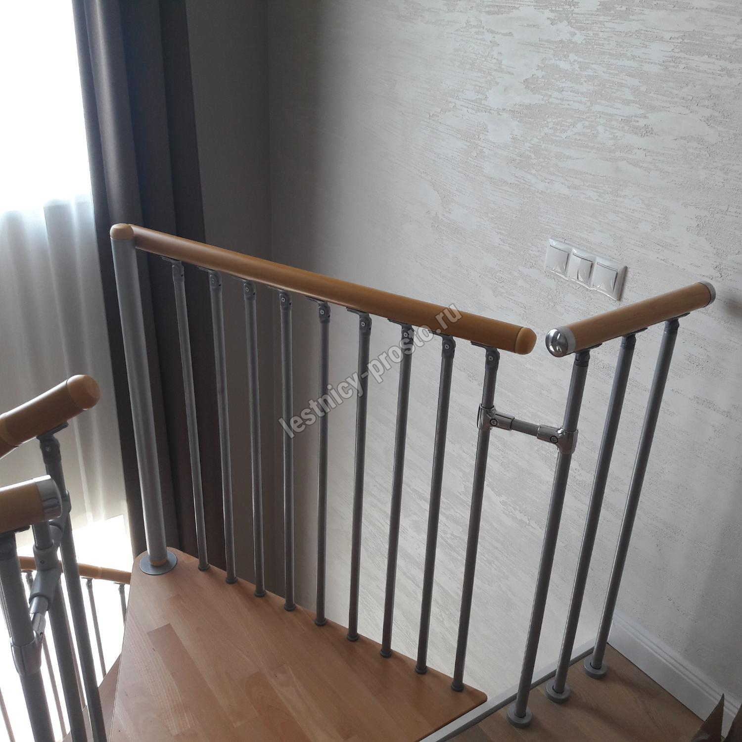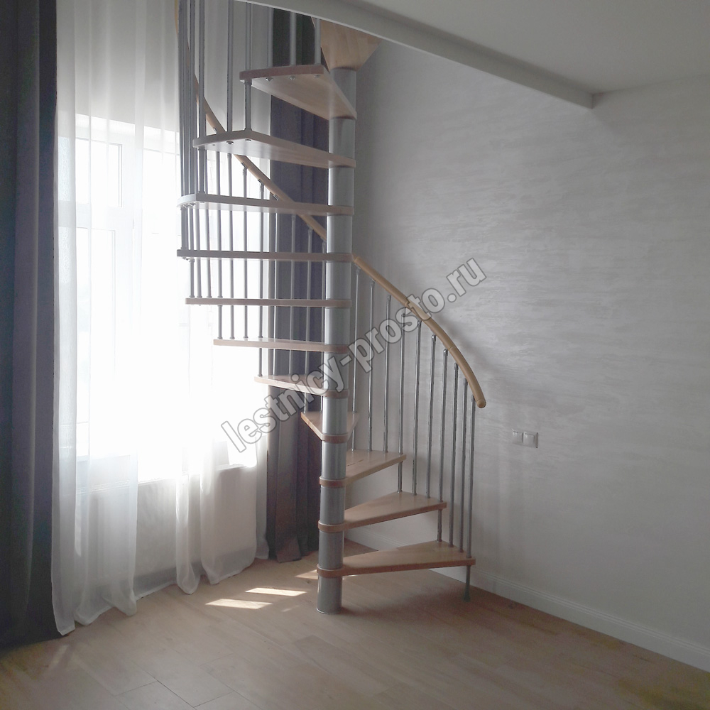 Лестница представлена в двух вариантах: с поворотом направо и с поворотом налево. Благодаря возможности регулировать высоту шага с помощью пластиковых вставок (входят в базовый комплект), высоту лестницы можно варьировать в пределах от 2860 до 3090 мм. Кроме того, купив дополнительную секцию для этой лестницы, можно поднять высоту до 3320 мм. Поручень изготовлен из массива бука в тон ступеням. Ступени и поручень покрыты износостойким защитным лаком.