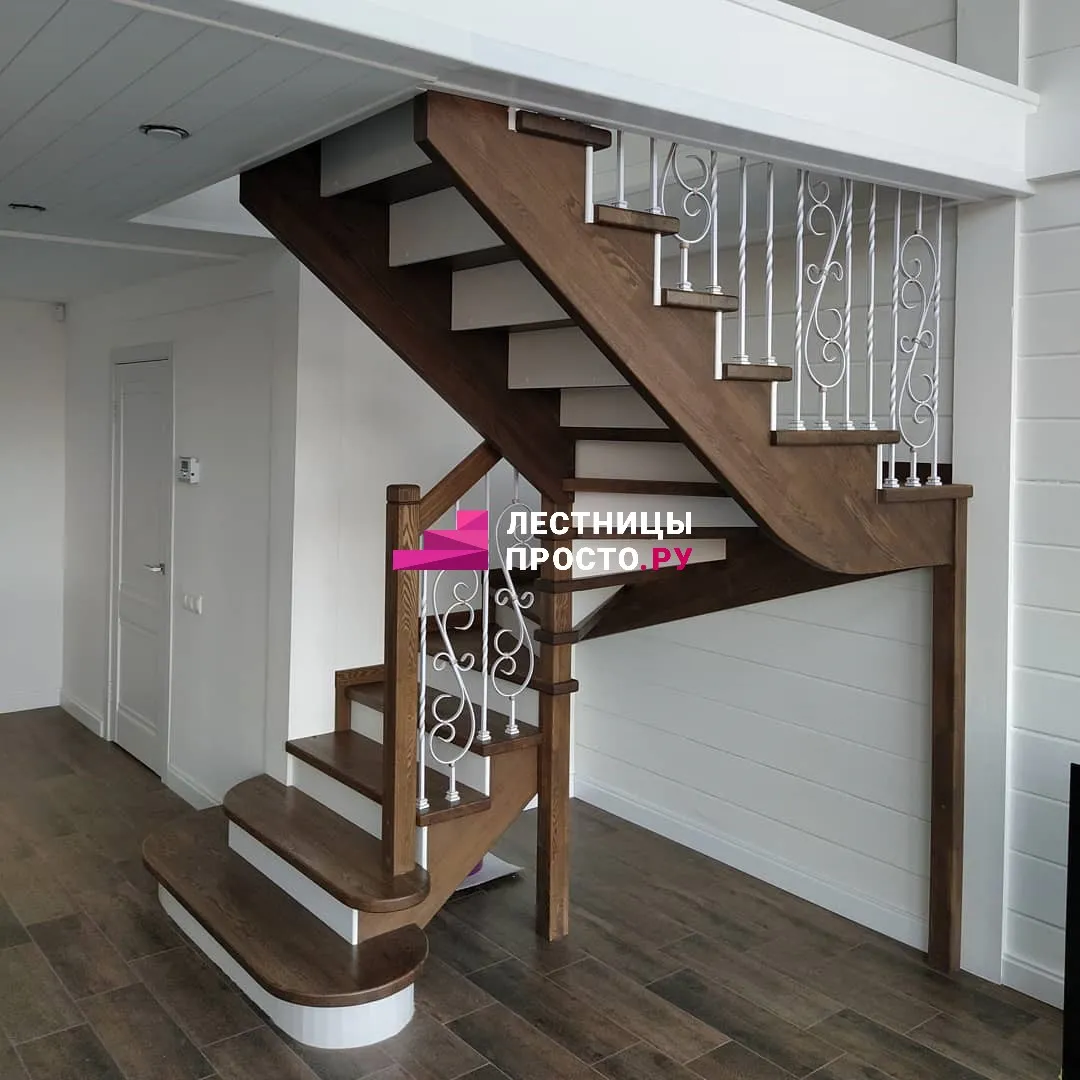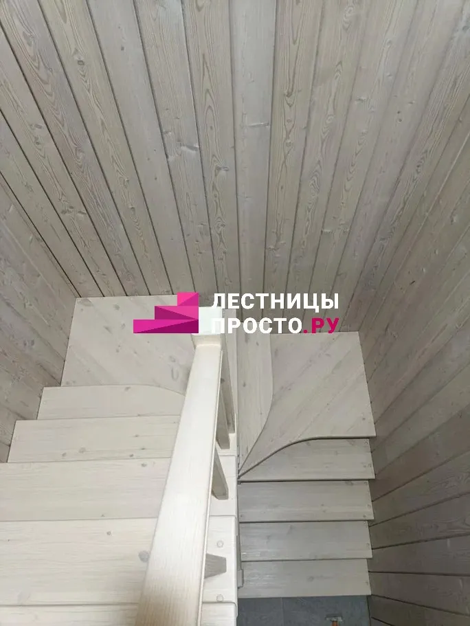 Г-образная лестница из сосны для частного дома ЛС-07/4