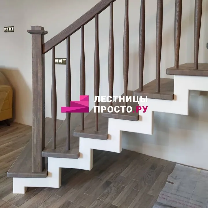 Лестница на центральном каркасе г-обр. металлик, ступени лиственница, LP-151021